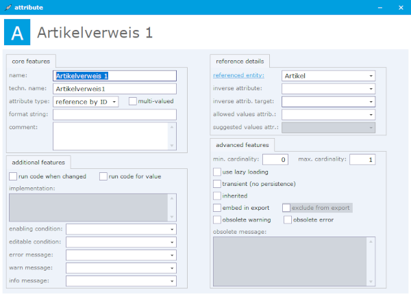 • Nutzungshinweis: Mehrwertige Verweisattribute aus Canotis BOS (Multi-Value-Associations) müssen unter Verwendung einer Zwischenentität umgebaut werden.